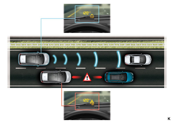 而5008全車系皆標準配備HUD飛航式抬頭顯示器提供駕駛重要資訊,包含車速、定速巡航 / 速度限制及前方車距警示雷達等,藉由投射方式將資訊顯示至駕駛前方的一組半透明面板上。其中,前方車距警示雷達,可輔助駕駛人與前車保持適當安全車距,警示系統則可藉由中控上操作按鍵設定警示秒數自0.9秒至2.5秒,作為駕駛人與前車距離過短之提醒。除此之外,HUD還可顯示定速巡航 / 速度限制之內容,不僅維持駕駛視線,更有效輔助提升主動安全性。