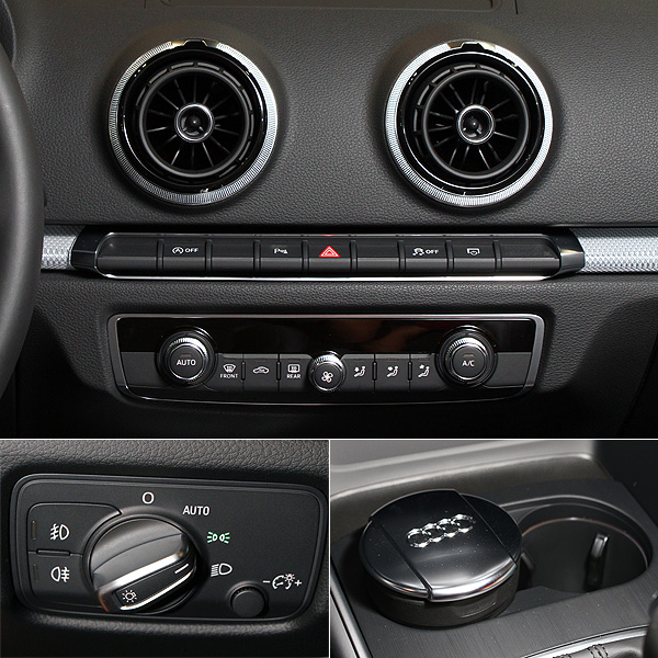 打開車門,A3 Sportback與Audi家族的各款產品一般,出色的質感仍是內裝的基調。在內裝設計的思維上,A3 Sportback仿效A1,運用4具圓形空調出風口作為車室中最主要的元素,搭配按鈕簡化、與儀表板線條融合的中控台設計,以及3D-Design Opitc飾板與鋁合金內裝嵌件等點綴,A3 Sportback散發著簡約卻不失年輕氣息的氛圍。