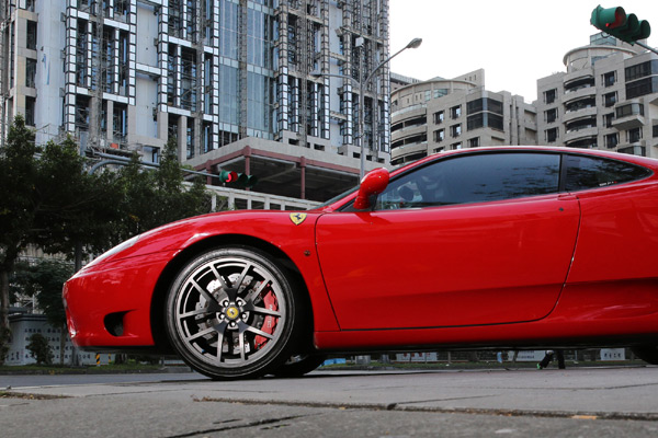 這輛在8500rpm可輸出400匹馬力的F360 Modena F1,原廠配備的圈胎規格為前:18 x 7.5J 後: 18 x 10.0J鋁圈以及搭配前215/45ZR 18 後275/40ZR 18輪胎,一般道路行駛時就已經慘叫不斷,由於車主想下屏東大鵬灣賽車場參加超跑獨走賽事,而車主據之前使用原廠Porsche 997 4S下場的經驗,想要在大鵬灣跑上10多圈,煞車與輪胎提升真的為首要改裝項目。故車主除了將煞車改為前12後6活塞外,更向德國F.MATCH亞洲代理商買了GTO鍛造系列前19x9.0J後19x11.0J鋁圈,搭配TOYO R888 前235/35R19後295/30R19熱溶胎,以應付PIC大鵬灣賽道。F.MATCH這組GTO forged系列的ET值(offset),針對Ferrari F360與430無需再使用鋁圈墊片就切齊葉子版,由於是專車專用,故連原廠中心孔蓋、鋁圈螺絲皆不需要更換,更不需要軸套。