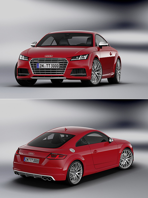 全新第3代大改款Audi TT/TTS於日內瓦車展隆重發表,其外型承襲1998年第1代TT前衛的幾何輪廓,以及第2代TT流暢洗鍊的線條,全新Audi TT/TTS再度開創了當代Sport的全新格局。於車頭的部分,更開闊而扁平的Audi Singleframe水箱護罩仍是第3代TT/TTS不容錯認的家族特色,而全新TT/TTS所採用的頭燈更內建Audi Matrix LED矩陣型頭燈科技,再配置源自利曼大賽常勝軍R18賽車著名特色的全新造型極線式日行燈設計,更突顯全新第3代TT/TTS的前衛性格;車尾內建電動收折式擾流尾翼,尾燈同樣內嵌與頭燈呼應的LED極線式導光技術,排氣尾管則分TT/TTS兩車型分別以圓形雙出和橢圓四出兩種形式;從車側延續TT家族流暢卻充滿張力的幾何線條搭配流線低扁的車頂,到外擴的輪拱延續筆直的肩線貫穿全車,至車門下方再以Tornado Line呼應,創造更豐富的視覺層次。第3代TT/TTS保留與前一代相同的車長和車高,軸距則增加37mm,在緊湊的車身尺寸之下創造更優異的底盤配置;全新車款更加入了新一代Audi ultra輕量化科技以及ASF輕量化車體,整體車重則更較前一代車款減少達50kg。