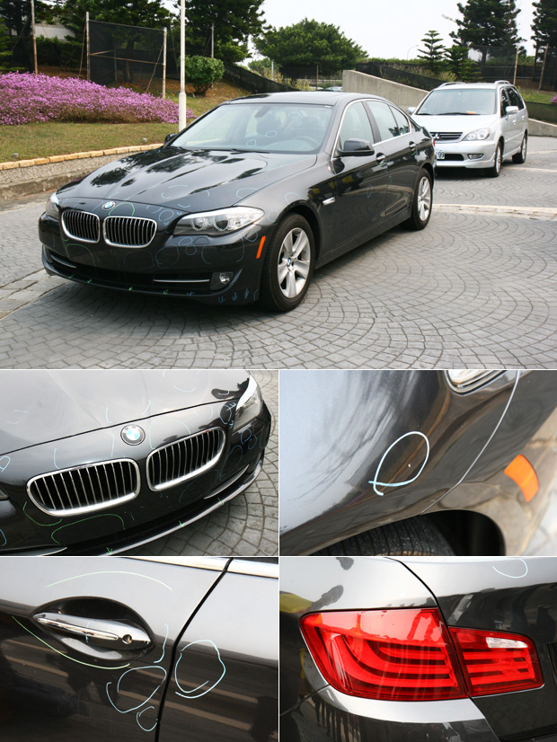 跑檢測流程的一開始,ARTC會先請專員檢視車輛外觀,然後在任何有瑕疵、或損傷的車體表面做記號,然後拍照存證,而這劃記的色筆畫在車體鈑金上是可以擦拭乾淨的,因此車主無需擔心,在與車主進行確認後,接著就能排隊,並準備進行逐車審驗。