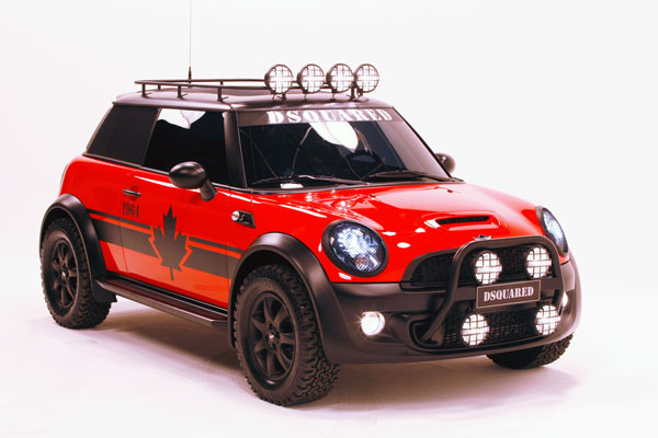 針對2011 Life Ball,長年贊助此活動的Mini找來了由加拿大設計雙胞胎Dean與Dan所創立的Dsquared ²品牌加持,而這雙胞胎兄弟則選中了Mini Cooper S作為發揮設計創意的基礎,設計主題則為具備越野冒險的武裝配備。在紅色與黑色的雙色基調中,導入了如拉力賽事中車輛常裝備的強力燈組,安置於車頂與水箱罩內,而全車體下部加裝的黑色粗壯護板,則與套上越野胎的黑色輪圈匹配,當然,拉高的底盤高度,更是加強其越野意味的必備調校。