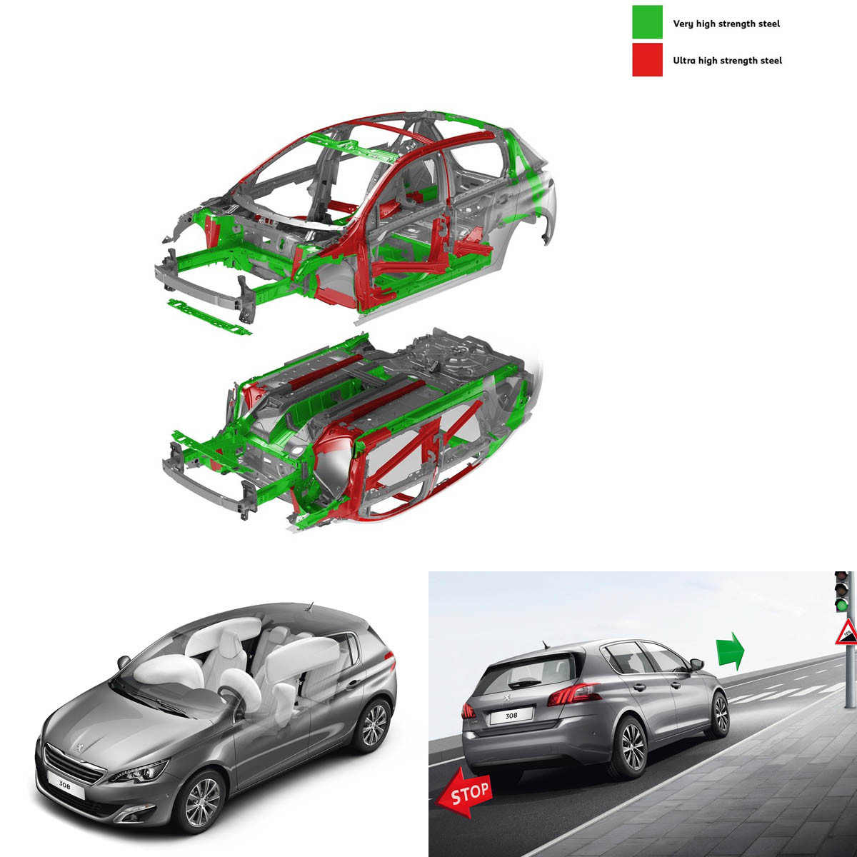 308 / 308 SW為Peugeot車系首款採用PSA集團全新開發之EMP2模組化平台,超高剛性車體結構及潰縮設計,可抵抗多樣化意外撞擊,更榮獲歐洲撞擊測試最優異評價。308 / 308 SW擁有多項高效率智慧主動安全電子系統,並透過ESP電子車身穩定控制系統整合多項電子化主動安全裝置,包含ABS防鎖定煞車系統、EBFD電子式煞車力分配系統、EBA緊急煞車力道輔助裝置、ASR加速防滑控制系統及CDS動態穩定控制系統等,並標準配備ITC智慧型循跡控制系統及HSA斜坡起步輔助功能,在在展現高度防護基準。