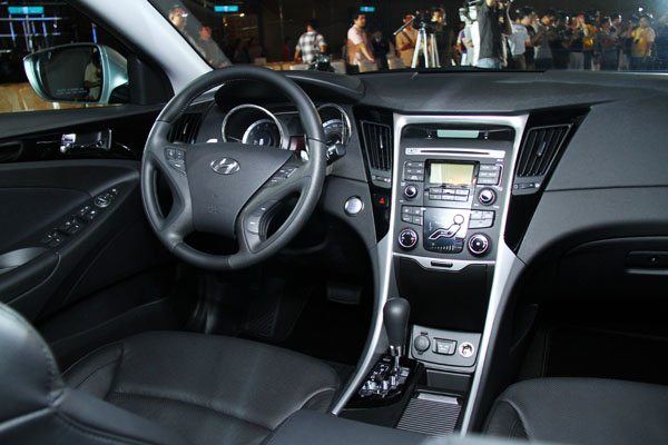 延續跑房車訴求,Sonata以黑色系真皮內裝,黑色鋼琴鏡面飾板,結合精緻軟質塑料,雙筒跑格儀表,全車系配置F1方向盤換檔撥片,整體座艙呈現科技藍調冷光,形成了以跑車設計為靈感的戰鬥座艙。