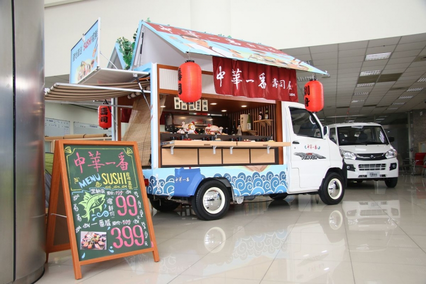 行動車的風氣在近年越來越興盛,不少年輕老闆也展現自己獨特的創意來將自己的商用車改造的獨一無二,在記者會現場的「台灣首創行動迴轉壽司車」便是以中華菱利改造而來,它不僅是迴轉壽司生意的行動店鋪,也可以化身休閒小屋,讓商用車也成為兼具生活休閒功能的好夥伴!為了挖掘更多的行動車創意,中 華三菱也舉辦「創意行動車票選活動」,提供一個舞台讓年輕頭家們展現自己最獨特的idea。