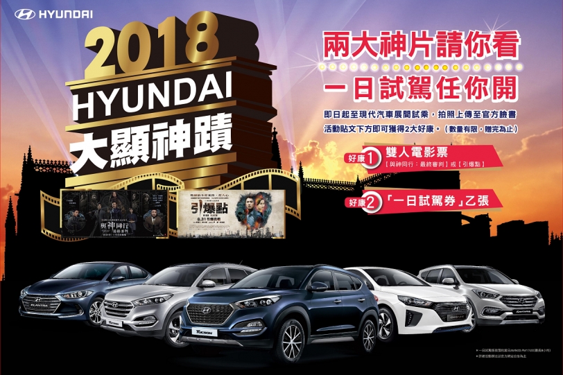 HYUNDAI現代汽車繼打破業界先例推出不買車還送你千元禮券的「一試千金」創意試乘活動以來,隨即在市場造成熱烈話題討論,如今為了讓民眾有機會可以更深入認識現代汽車,而不再僅是短暫淺嘗,本月更加碼推出免費「一日試駕」活動註3。民眾只要於展間初次試乘後拍照,並上傳至Hyundai Taiwan 臉書8月活動貼文上,便可獲得電影票兩張(隨機贈送)和一日試駕券(限試乘者本人)。想更深度體驗HYUNDAI車款魅力,可向原展示中心或上官方網站預約一日試乘,經由本公司審核排期,就能最多8小時試駕註4體驗SUPER ELANTRA (ELANTRA SPORT除外)、TUCSON、SANTA FE、IONIQ等車款;此外,參與一日試駕體驗的民眾於試駕後個人臉書上分享【照片+感想】,還可再獲得神秘禮品。活動詳情請洽HYUNDAI全國展示中心或HYUNDAI Taiwan官網查詢。