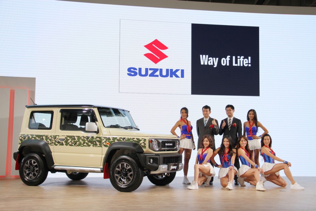 有鑑於Jimny詢問度超高,TAIWAN SUZUKI特別展示加裝12項日本原裝配件點綴的Jimny特仕車,包含了加大通風截面的蜂槽格狀水箱護罩、銀色前下護板、紅色擋泥板、銀色後照鏡、車門外手把增加碳纖維裝飾、銀色車側踏板、專屬備胎蓋、Jimny專屬晴雨窗,而車內部分則是有副駕座扶手以及車內門把手的黃色縫線皮革握把,以及在後廂新增置物隔網等,凸顯Jimny的高度客制化與配件與多樣性。
