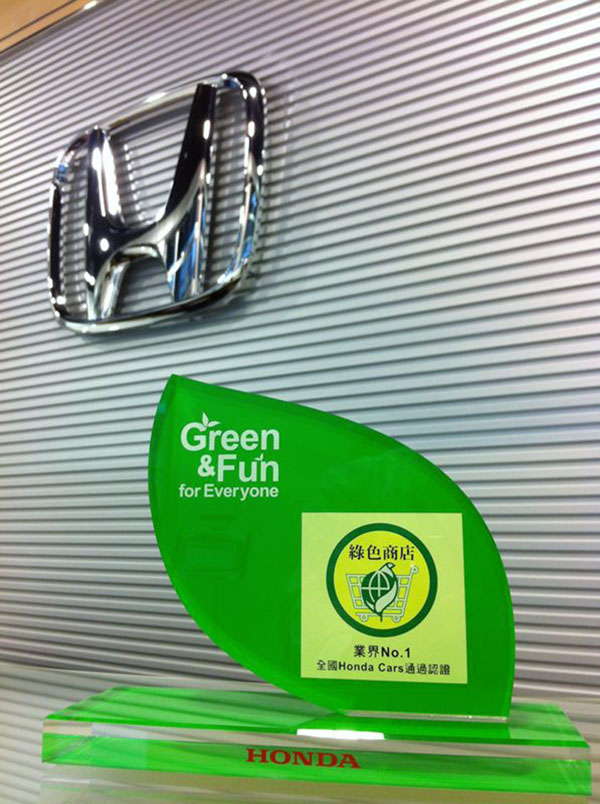 在提供優異產品給消費者的同時,Honda也將地球環境與生態保護視為企業責任,不斷挑戰研發節能低污染科技。最新宣示的全球事業體減碳目標及「Blue Skies for Our Children」願景,積極朝向創造駕馭樂趣與節能環保同樣傑出的車款,Honda車款在國內獲得行政院環保署年度環保車與環保標章的認證,其中在台生產的Civic、Accord、CR-V皆獲得環保署頒發之「環保車」,以及能源局頒發之節能標章等殊榮。而且Honda 不僅商品綠色環保,更自主性推動包含工廠、採購、物流、辦公室及經銷商的六大環保工程,且擴大全員參與環保公益活動,力挺環保愛地球。
