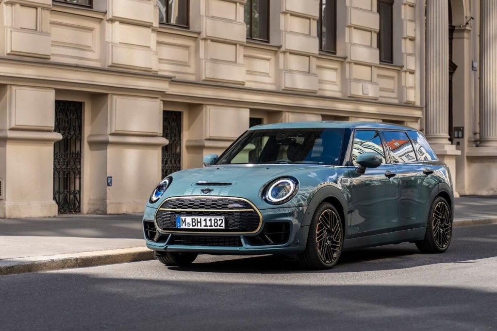 車頂和車外後視鏡蓋可選配黑色飾面,而車門把手、排氣尾管飾件、MINI標誌和鋼琴黑型號銘文是特定版本設計的組成部分。18吋輕質合金輪圈採用Untold Spoke設計,雙色表面採用Jet Black/Refined Brass組合,此專為該版車型所開發。顧名思義,這種配色讓人聯想到精緻的青銅,這種配色方案也應用於水箱護罩格柵環繞和橫桿,以及後分體門上的Clubman字樣。