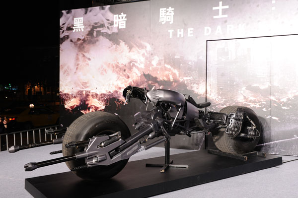 在電影正式上映之前,華納兄弟公司已先行安排電影中的「蝙蝠摩托車」在北市各大人潮聚集的百貨公司與景點作機動性的巡迴展出,相信不少死忠影迷已經在許多地方目睹它的身影。新竹、台中與高雄的粉絲們別著急,7月24~26日它也將巡迴中南部。7/18首映會這一天,電影公司首度將這輛「蝙蝠摩托車」落地展出,成為首映會中最耀眼的嘉賓之一,讓觀眾在沒有玻璃帷幕反光的情況下,更清楚見到這輛與蝙蝠俠出生入死的摩托車英姿。同時,在片中布魯斯韋恩搭乘的Bentley賓利也將參與此次盛會:由四門Continental Flying Spur與雙門Continental GT雙雙擔任接送嘉賓的重大任務,相信完美工藝融合極致性能與優雅身段的Bentley,將讓明星們體驗與布魯斯韋恩同等級的舒適與豪華。