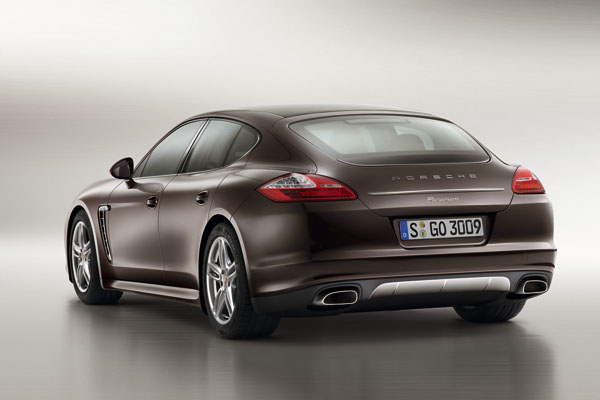 全新推出的Panamera 白金版,在外觀上,於側邊後視鏡下方、車頭進氣口橫柵、以及前輪上方車側邊排氣口、行李箱蓋上飾條、車尾出風口皆以金屬銀塗裝,同時搭配該車型所選定的五種塗裝顏色,在交互搭配下,表現出一種協調且高貴的外觀特色,另外,在窗框部分也採用了黑色高亮澤塗裝做為點綴。至於選定的五種塗裝顏色,分別有黑與白兩色標準純色,以及以選配方式提供的金屬黑、金屬深灰、金屬亮棕色。