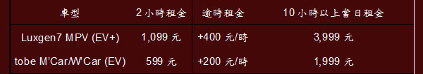 即日起,只要到tobe展示中心賞車,就能獲得格上租車的電動車租賃優惠券2張*,以300元的價格,租賃tobe電動車3小時(原價799元),搶先體驗愛地球、零負擔的綠色旅遊新玩法。目前消費者可於下列格上門市租賃tobe M’car/ W’car電動車: