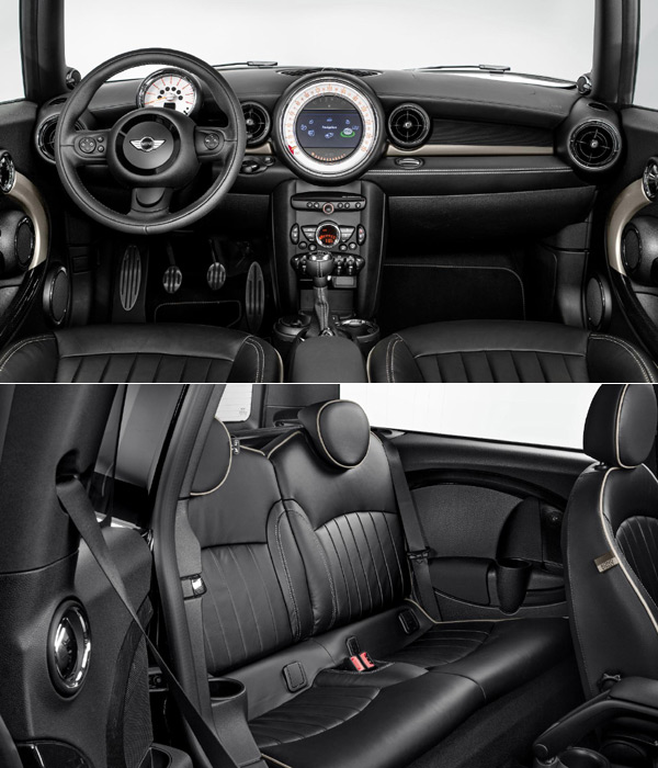 Clubman Bond Street的內裝與外觀配色相呼應,以黑色為基調、香檳色為輔。
