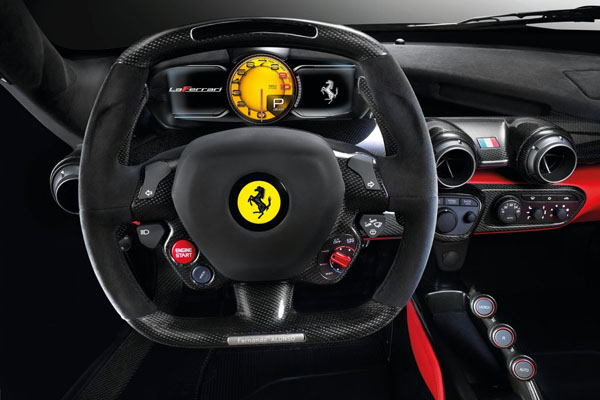駕駛艙的佈局在這方面起到了非常重要的作用。固定式跑車座椅經過特別訂製,而踏板區和方向盤均可進行調整。駕駛位置類似單座賽車,在設計時參考了法拉利F1車隊兩位現役車手Fernando Alonso費爾南多•阿隆索和Felipe Massa菲力浦•馬薩的建議,他們都在整個研發階段起到了非常重要的作用。