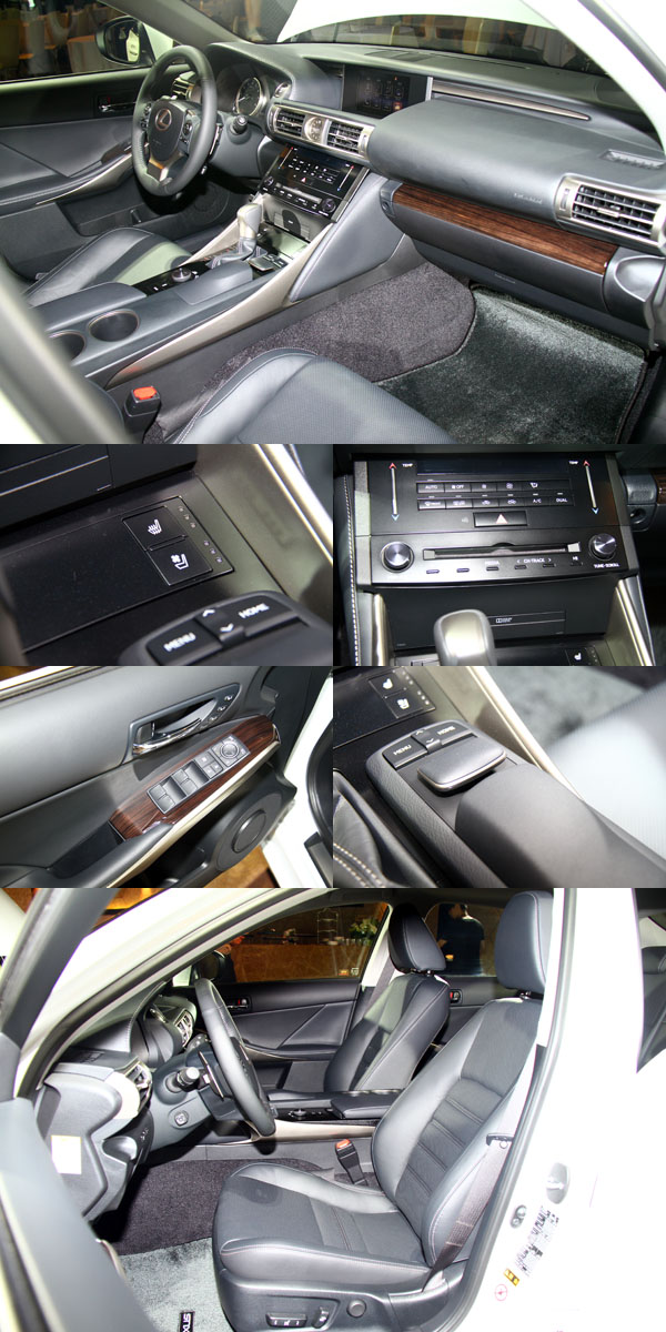 在內裝部分也延續了外在的動感設計,導入大量類金屬及皮革套件,在前衛時尚氛圍之外,依然不失Lexus對豪華舒適的堅持,使整體車室更具科技前衛氛圍。採用HMI概念座艙配置,讓行車需求觸手可及。特別將中控台區分為顯示區及操作區,讓駕駛在開車時能輕鬆掌握行車資訊。全車系都搭配視線前移最佳化的7吋顯示幕,縮短駕駛者視線移動角度,資訊辨識更為容易。操作區則採用全新Remote Touch直覺式資訊操控系統或智慧型旋鈕操控系統,不僅容易上手,安全性也更高。其中Remote Touch直覺式資訊操控系統將按鍵調整與手腕擺放的位置相當,透過滑鼠般的輕巧操控,其符合人體工學的設計讓駕駛者能以最輕鬆自然的姿勢操控各項功能。