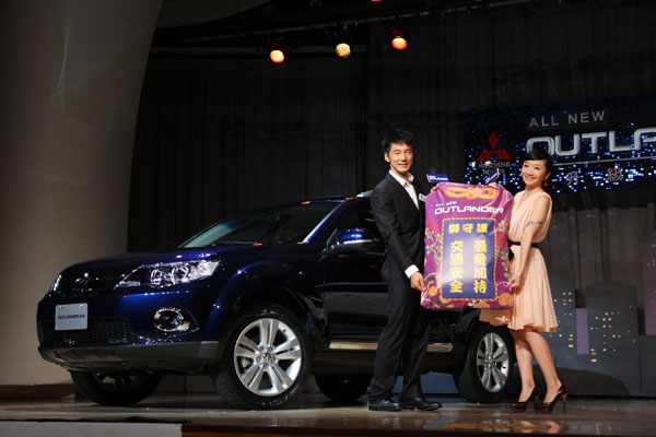 中華汽車執行副總經理劉興臺代表贈車給代言人李李仁夫婦,成為全新改款Outlander的第一位車主。