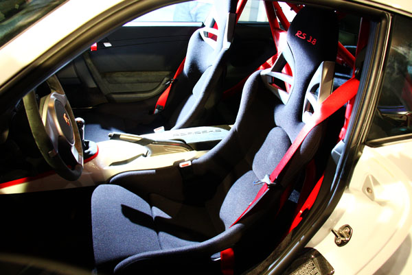 全然競技化地座艙,原附有賽車專用儀錶板,但由抵台時與車輛控制電腦並未一併裝配,由於此輛全球唯一的環保賽車,因此電腦設定參數為Porsche的最高機密,因此巡展期間,都未配置車輛控制電腦。
