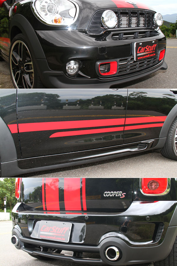 如同先前所述,主角之一的Mini Cooper S Countryman JCW,共有兩部分之加載配備,其中一部分為針對Mini Cooper S Countryman的選用配備,另一部分則為JCW的性能套件,加載套件如下表所示: