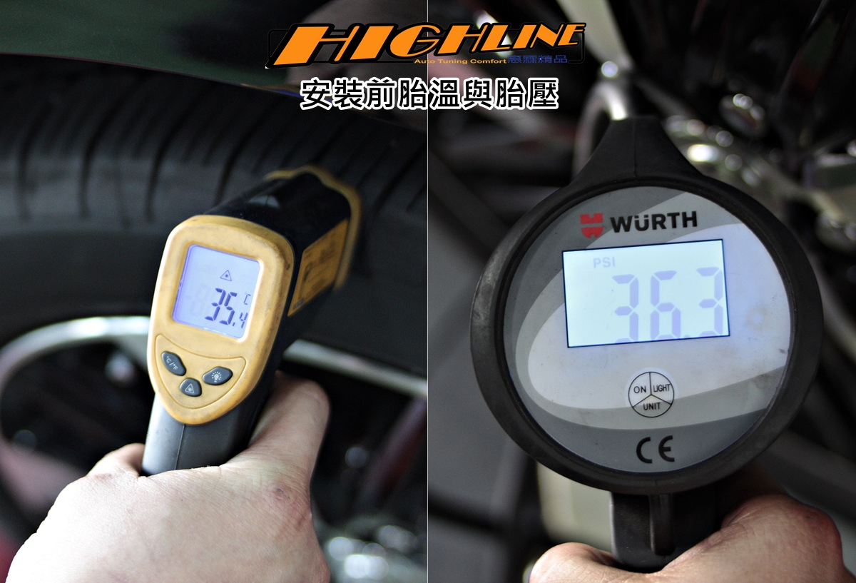 安裝前,先量胎壓與胎溫,確認底盤情況