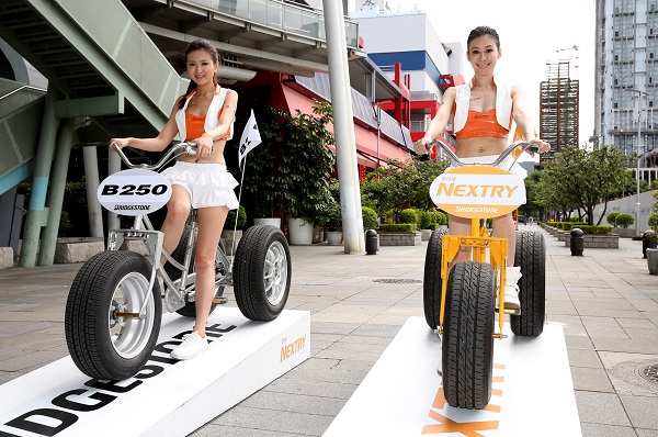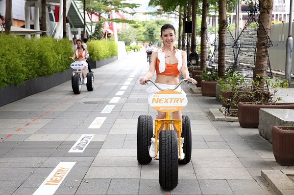 為了讓消費者能直接感受新品牌輪胎的優異性,台灣普利司通還特地將新款NEXTRY與舊款的B250型號之輪胎,分別做成兩台三輪車,藉由踩踏與滑行的過程,讓消費者體驗起步、騎乘與滑行的差異。由於低磨耗輪胎過彎的阻抗較小,連力氣小的女生或小孩都能輕鬆踩動;而低阻抗的輪胎,只需要一點點的動力就能滑得很遠,透過斜坡滾動測試即可知道兩者的差異性。