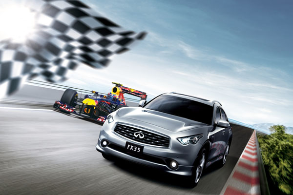 Infiniti自2011年賽季起,本著「挑戰極限、超越巔峰」的相同理念,成為F1 Red Bull車隊合作夥伴,其冠軍車手Vettel透過優異的表現,以史上最年輕衛冕冠軍車手之姿再奪F1世界冠軍,讓身為合作夥伴的Infiniti同感驕傲。為此Infiniti推出FX35 V-Spec限量優惠專案,全車加裝26萬原廠套件,另加贈價值7萬元乙式全險及2萬元不明刮損理賠,以新台幣269萬元限量優惠上市(註1),輕鬆入主擁有F1靈魂的Infiniti FX。
