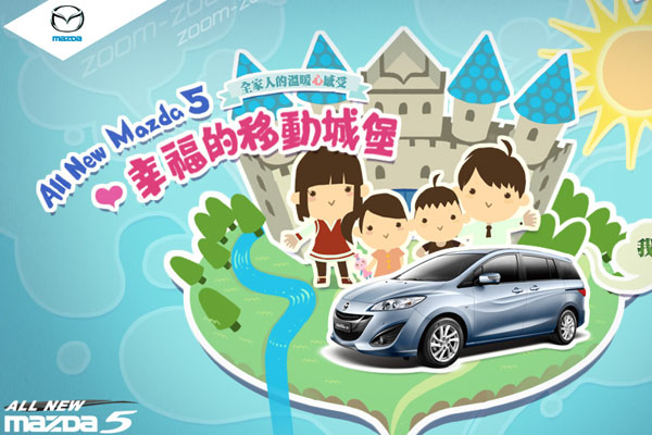 最佳「好爸爸房車」Mazda5,從上一代車型開始,已乘載超過2.5萬個家庭的幸福旅程,全新進化的All New Mazda5推出後,更成為國產七人座家庭轎式休旅車新標竿!趁著春天最適合全家出遊的季節,Mazda特別舉辦「All New Mazda5幸福的移動城堡」網路問答抽獎活動,上網答題並留下連絡資料,就能參加專屬親子好禮抽獎。還有知名親子部落客開著All New Mazda5旅行的幸福春遊記,體驗乘載全家的「幸福移動城堡」All New Mazda5 !快上活動專頁http://www.Mazda.com.tw/Mazda5 參與活動答題,感受All New Mazda5帶給全家的幸福滋味!