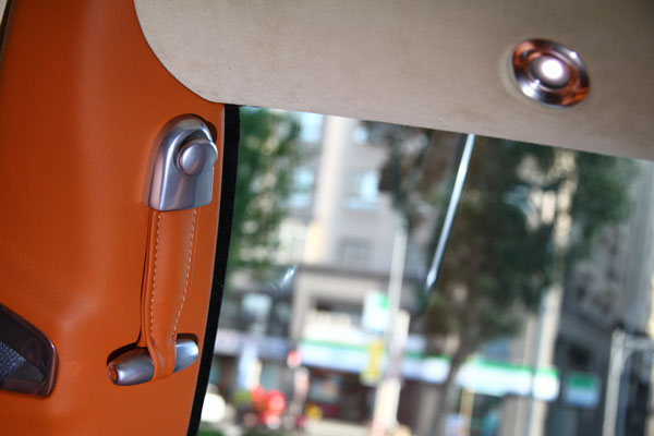 前座遮陽板的面積小巧可愛,但依舊有其效果;前座調整機制位於中央鞍座兩側,並於頭枕處繡有車名,椅背則有一小型的置物袋。