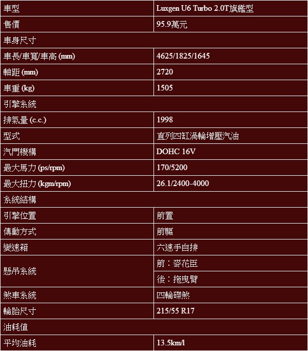 擁有低油耗與低起價的全新Luxgen U6 Turbo著實教人期待。