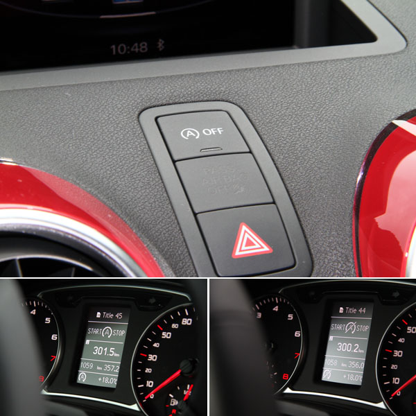 新配置的Start-Stop怠速熄火系統則是A1的節能新兵器,並且可藉由中控台上方的按鈕啟閉該功能,儀錶板中也會顯示該系統的啟閉狀況。
