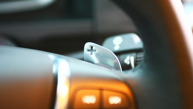 方向盤的換檔撥片為標準配備之一,也是此車款的進步重點。