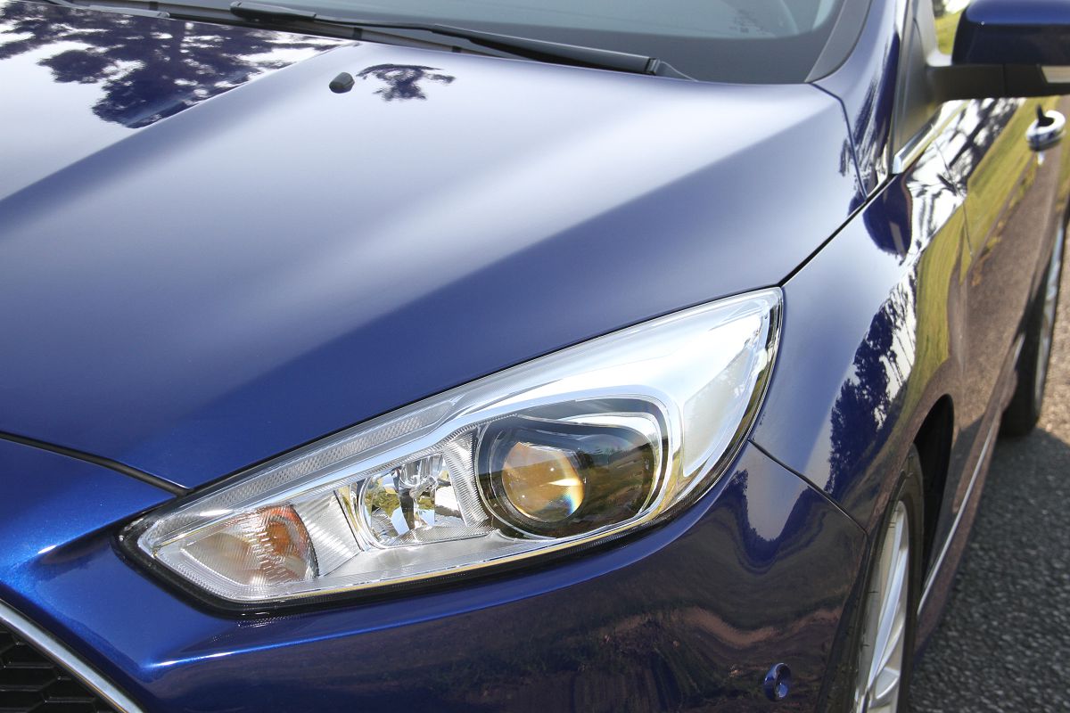 隨著Ford旗下小車Fiesta新款馬丁頭的成功,這次主力球員Focus也正式進入了馬丁頭新外觀世代,在比Fiesta車身尺寸大一號的Focus身上,換上馬丁頭後更顯動感,四門與五門車型在車頭部分沒有太大的不同,引擎蓋上的兩道摺線,標誌性大型鍍鉻水箱護罩運用更具運動性的網狀格柵,兩者線條交會於車頭並完美結合,箭魚式頭燈整合LED日行燈功能,搭配保桿兩側的倒梯形霧燈,車頭正前方視覺感覺更為低寬,散發出淡淡的運動氣息,另外在配置1.5L EcoBoost引擎的車型中,大燈將升級為 HID 雙氙氣頭燈附自動水平調整,另車頭增添了不少質感。