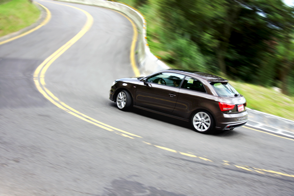 其實在前一次試駕A1 1.4 TFSI時,對於它的動力表現就已經感覺相當夠用,而本次A1 Sport在增加了63hp的動力後,更是讓它衝勁十足,在加速數據上與VW Golf GTi相仿,但是因為車身尺碼較小,所以瞬間的衝刺感更為明顯,甚至會讓你忘了還有後座與尾廂,在山道上,靈活的身驅也帶來了優異地操駕感,上一回在A1 1.4 TFSI上,讓我們尋找到過去1990年代末期小鋼砲那種純粹簡單的駕駛感,在A1 Sport仍然維持這樣的手感,也許俐落度方面有許多性能車更為強悍,但是A1也因為少了那分敏感的神經質,帶給駕駛者的壓力也減緩許多;而且在試駕過A1 1.4 TFSI與A1 Sport後,發現它們於過彎時,車尾的安定性比想像中穩定,但跟進度相當敏捷,當車頭轉向後車尾會馬上跟進,加上小巧的身軀,往往在後輪還來不及外滑時,整輛車已經出彎了,因此,它可接受非正規駕駛的範圍也較廣,有時發現錯過了該有的路線,只要方向盤稍加修正,就可以立刻化解;但是由於A1 Sport的動力輸出增加,因此山道上行駛時得更精準地控制油門深度,由其是出彎時若油門踩過深、瞬間動力輸出過多,反而會造成前輪打滑,影響了過彎的順暢度,幾次刻意以較快的速度進彎,還是會出出現轉向不足現象現象,但此時ESP系統便會介入修正,將車輛修回原來的路線,保持該有的安全性。