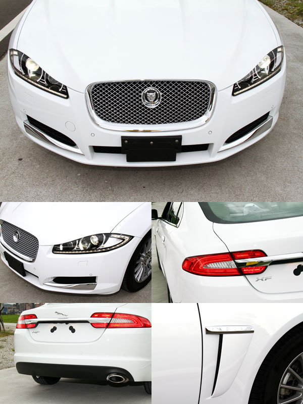 在全新小改款的XF上,除了維持原來的圓潤線條,在車頭部分融入了更多旗艦XJ車系的元素,網狀地水箱護罩在加大面積後,營造出更強烈的霸氣,頭燈部分則是在下緣增加了J-Blade LED日行燈,帶出前衛氣息,車尾部分也使用了LED晶鑽尾燈,與頭燈相呼應,另外,在保桿下緣部分則採啞黑色處理,搭配新的橢圓形排氣尾管,使視覺更為年輕動感,同時將尾廂細長鍍鉻飾條上的〝JAGUAR〞蝕刻字樣取消,單一以躍豹廠徽代表Jaguar,簡化視覺感受。