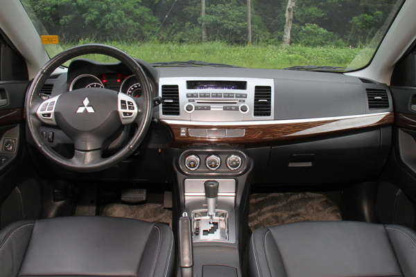世代最老的Mitsubishi Lancer Fortis,在內裝部分也有與Luxgen5 Sedan相同的問題,硬質塑料件滿佈的結果,讓車室氛圍顯得較為廉價,所幸黑色系基調搭配深色木紋飾板能夠有效美化視覺質感,再加上軟質塑膠皮包裹的車門,以及原本便以直線作為主構成、相對耐看的視覺印象,看得出來雖然車輛本身內裝質感確實不佳,但中華已很努力想要彌補先天設計上的不足了。