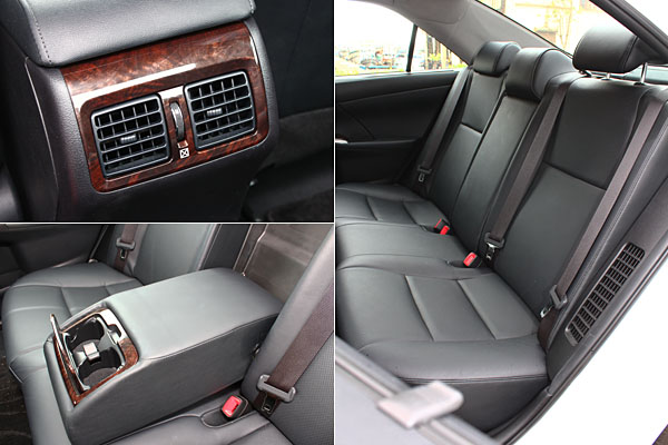 實際以身高177公分之成年男性為比例尺測量,並將前座以適當的駕駛姿勢進行調整之後,Camry Hybrid可以為後座乘客提供24公分的膝部空間,頭部空間亦有5.5公分的水準,表現與過往的直接對手Accord在伯仲之間。不過,在實際到路上的乘坐感受中,Camry Hybrid採用類似沙發設計的後座坐椅,無論是椅面或是椅背都較為平整,在包覆性與支撐性上顯然遜於其他各款對手。同時,如同於一般的國產日系房車,下背部的突起也影響了長途乘坐的舒適性。再加上高度較低、並且形狀突出的頭枕設計,在一般道路的乘坐上,即使將頭枕高度調到最高,遇上坑洞也還是會不斷撞擊筆者的後腦勺與頸椎頂端的位置。雖然真皮的沙發式座椅看似舒適與大氣,面對臺灣的路面品質,卻無法提供出色的乘坐感受。