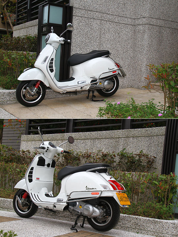 Vespa GTV 300ie,師法經典造型,分離把手與位在前土除上的頭燈,還有分離式座椅,都是絕不容錯認的獨有標記。