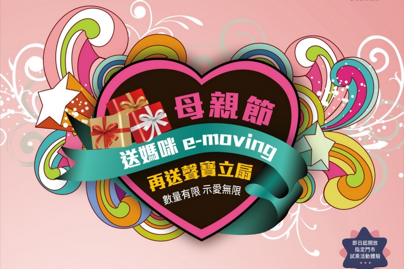 母親節將至,別忘了藉此機會寵愛媽咪!!選擇一台安全又環保並適合媽媽的電動機車,絕對是您母親節送禮的最佳選擇!現在只要購買中華汽車e-moving除享政府高額補助外,中華電信客戶入主e-moving還可享有獨家「業界最長電池保固4年」,再加碼送SAMPO 14吋立扇,這將是今年母親最有感兼具實用與心意的環保禮物!