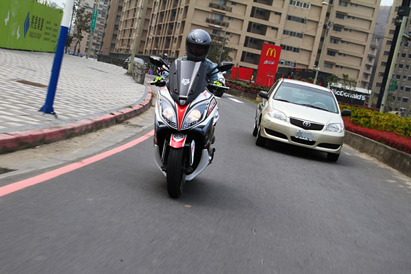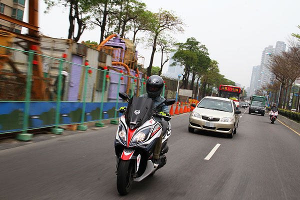 相較於一般白牌速克達,此300-400c.c.級距的中型速克達,於機動性面差異不大,但可使用的路權卻便利許多。