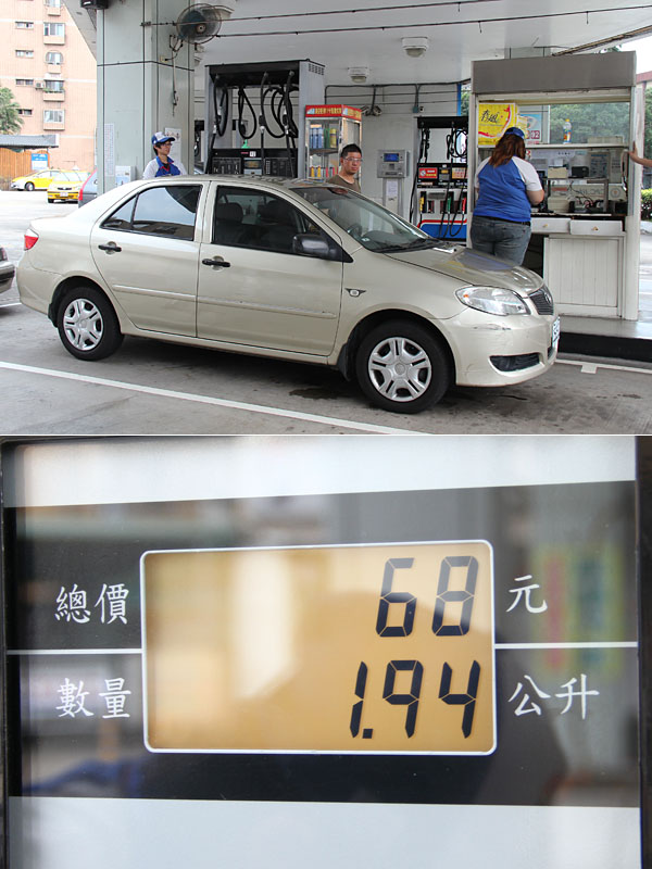 出發前當然要先加滿油,汽車以油槍跳停為準。
